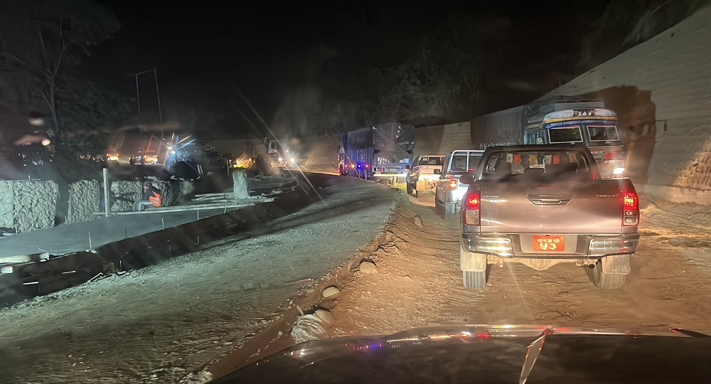 दाउन्ने सडक खण्डमा मन्त्री घिसिङको रात्रि अनुगमन : निर्माण कार्य तीब्र बनाउन निर्देशन