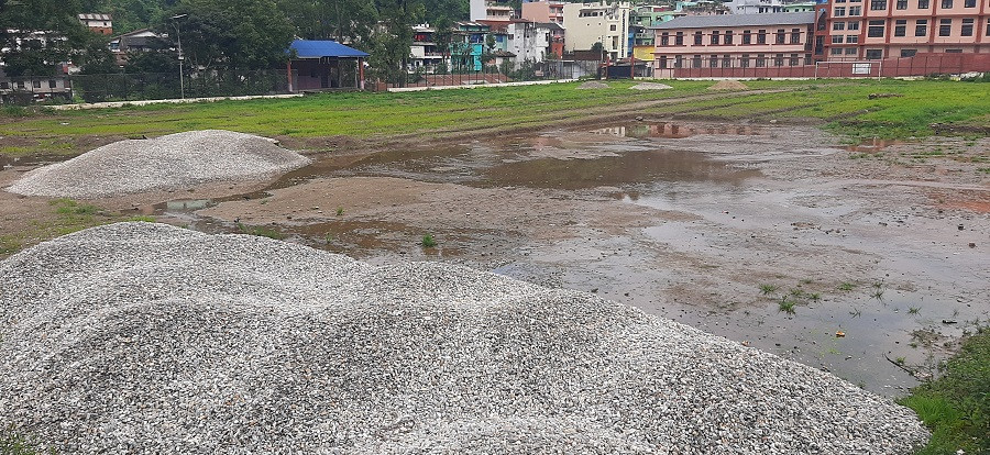 चिदीचौर खेलमैदानमा खाल्टा र निर्माण सामग्रीः सरोकारवाला निकाय मौन