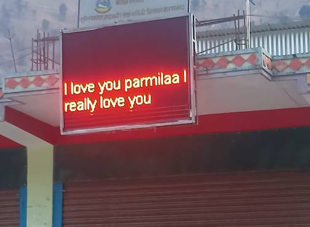 नापी कार्यालयको डिजिटल बोर्डमा ‘प्रमिलालाई माया गर्छु..’