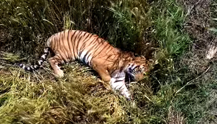 गाउँ पसेको पाटेबाघ नियन्त्रणमा