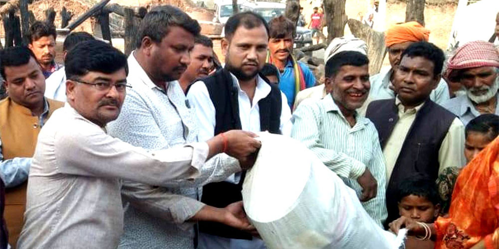 नरैनापुरका अग्निपीडित परिवारलाई राहत वितरण
