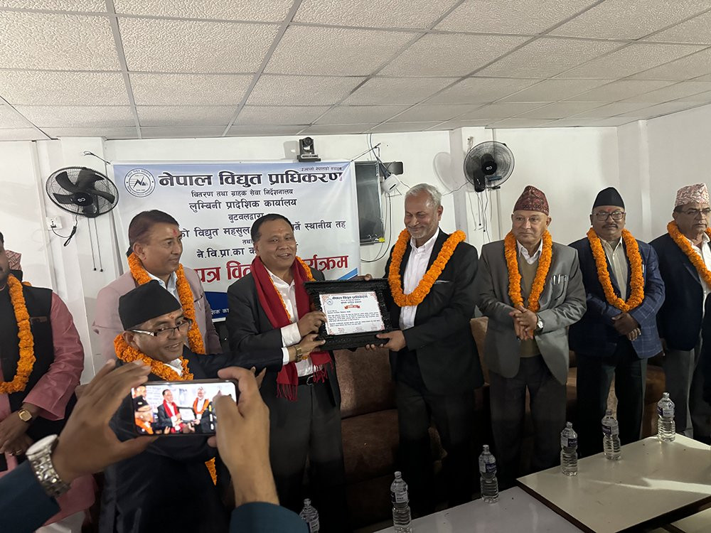 सडक बत्तीको महसुल बक्यौता तिर्ने पालिकालाई सम्मान