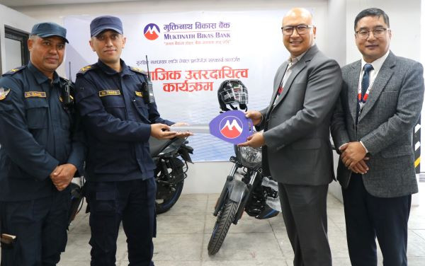 मुक्तिनाथ विकास बैंकद्वारा प्रहरी वृत्त महाराजगञ्जलाई मोटरसाइकल हस्तान्तरण