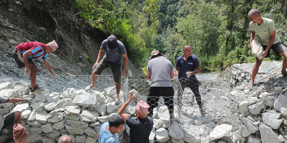 तुइनखोलामा माथिबाट पहिरो खस्ने क्रम रोकियो, बेलुकासम्म सडक खुलाउने गरी काम चल्दै