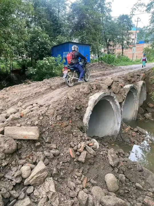 नालामा हालेको अस्थायी पुलमा क्षति, कुनै पनि बेला गम्भीर दुर्घटना हुन सक्ने