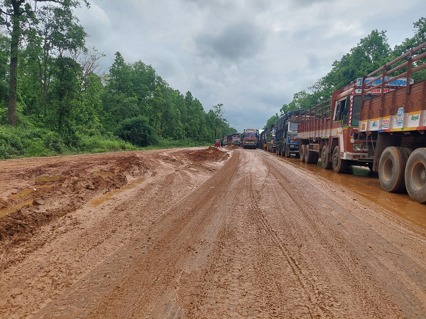 दाउन्नेमा सडक अवरुद्ध हुँदा मालवाहक गाडी ६ दिनदेखि सडकमै रोकिए