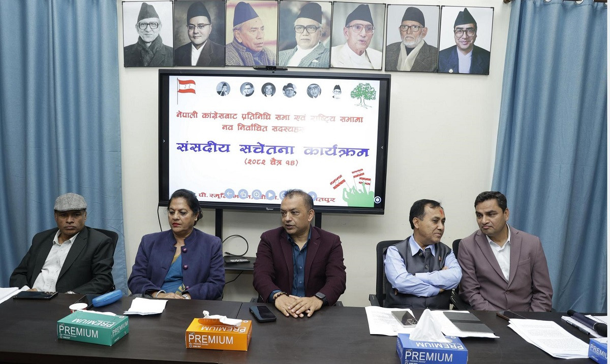 पाटन– नेपाली कांग्रेसले प्रतिनिधिसभा र राष्ट्रियसभाका नवनिर्वाचित सांसदहरूलाई ‘संसदीय सचेतना कार्यक्रम’ आयोजना गरेको छ । आज पार्टी कार्यालय सानेपामा सुरु कार्यक्रममा सांसदहरूलाई संसदीय अभ्यासलगायतका विषयमा अभिमुखीकरण दिइनेछ । कार्यतालिका अनुसार पार्टी सभापति गगनकुमार थापा, उपसभापतिद्वय विश्वप्रकाश शर्मा र पुष्पा भुसाल, महामन्त्री...