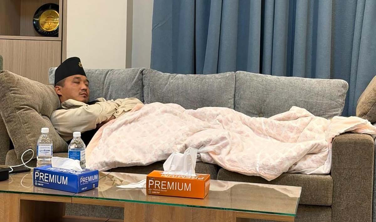 काठमाडौँ – निरन्तर काममा खटेका गृहमन्त्री सुधन गुरुङ मन्त्रालयमै आराम गरिरहेको तस्बिर सार्वजनिक भएको छ । कार्यव्यस्तताका कारण घर जान नपाएपछि उनी मन्त्रालयकै सोफामा सुतेका हुन् ।