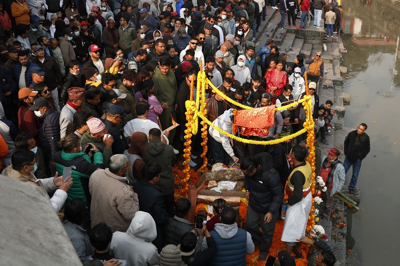 वरिष्ठ अभिनेता थापाकाे पशुपति आर्यघाटमा अन्त्येष्टि