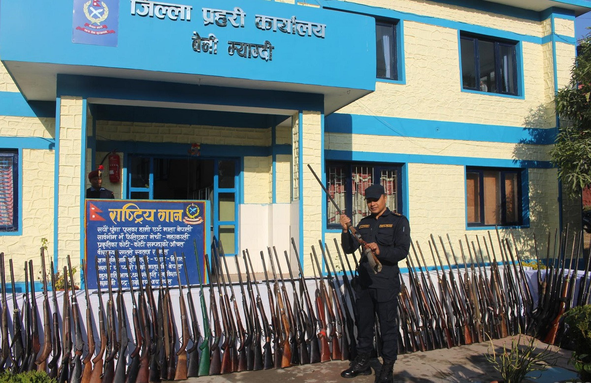 म्याग्दीमा एक सय पन्ध्र थान बन्दुक बरामद
