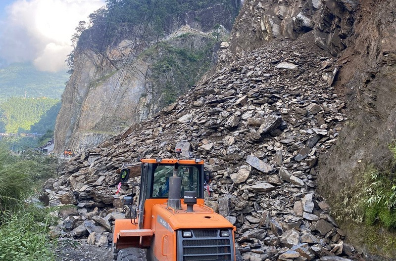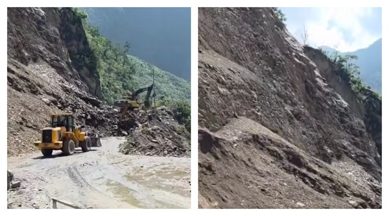 तुइनखोलामा माथिबाट पहिरो खस्ने क्रम रोकियो, बेलुकासम्म सडक खुलाउने गरी काम चल्दै