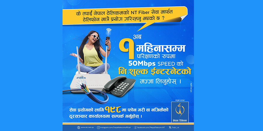 टेलिकमका फाइबर सेवाग्राहीलाई ५० एमबीपीएस निःशुल्क डाटा