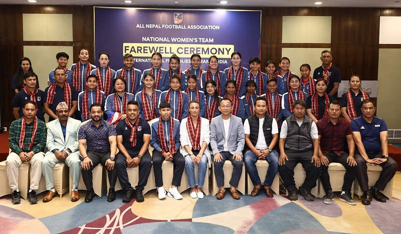 अन्तर्राष्ट्रिय मैत्रीपूर्ण फुटबल खेल्न भारत जाने नेपाली महिला टोलीको बिदाइ