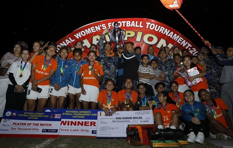 आर्मीलाई हराउँदै राष्ट्रिय महिला फुटबल प्रतियोगिताको उपाधि एपीएफलाई