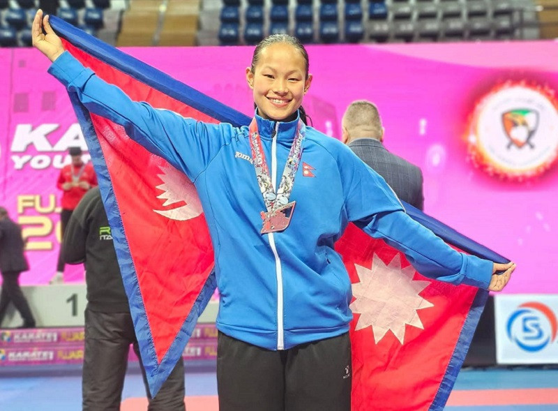 करातेकी एरिका गुरुङले के वान युथ लिगमा रजत पदक जितिन