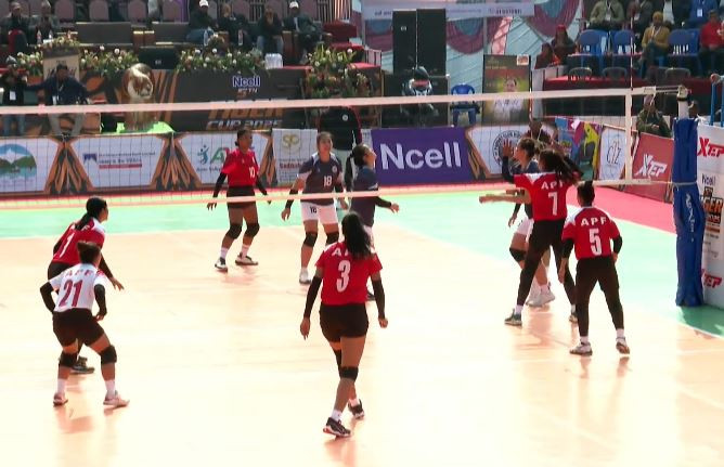 एपीएफको महिला टोली अपराजित रहँदै टाइगर कप भलिबलको पहिलो क्वालिफायरमा