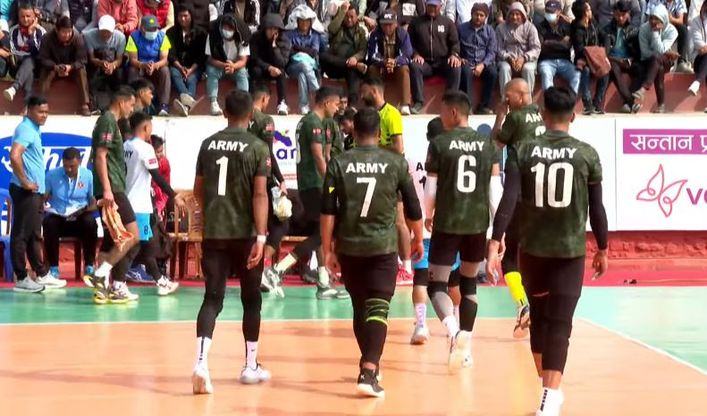 भारतकाे क्लबलाई हराउँदै आर्मी 'टाइगर कप' भलिबलकाे पहिलाे क्वालिफायरमा