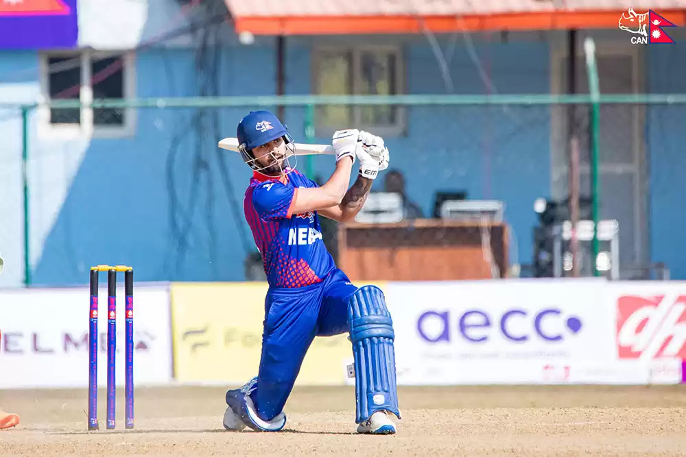 क्यानडाविरुद्ध ब्याटिङ गर्दै नेपाल