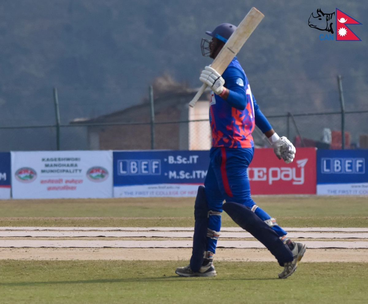संकटमा नेपाली खेलाडी, ९० रन बनाएर आउट भए अर्जुन कुमाल