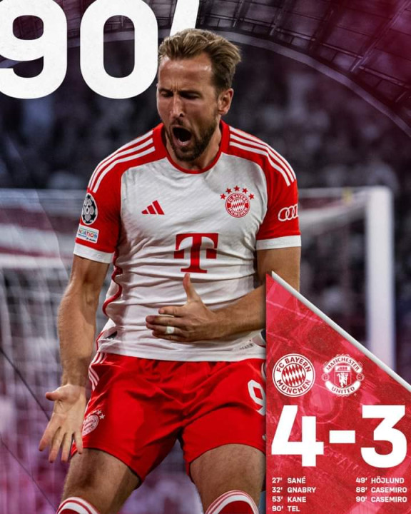 युनाइटेडविरुद्ध बायर्नको ४-३ को रोमाञ्चक जित