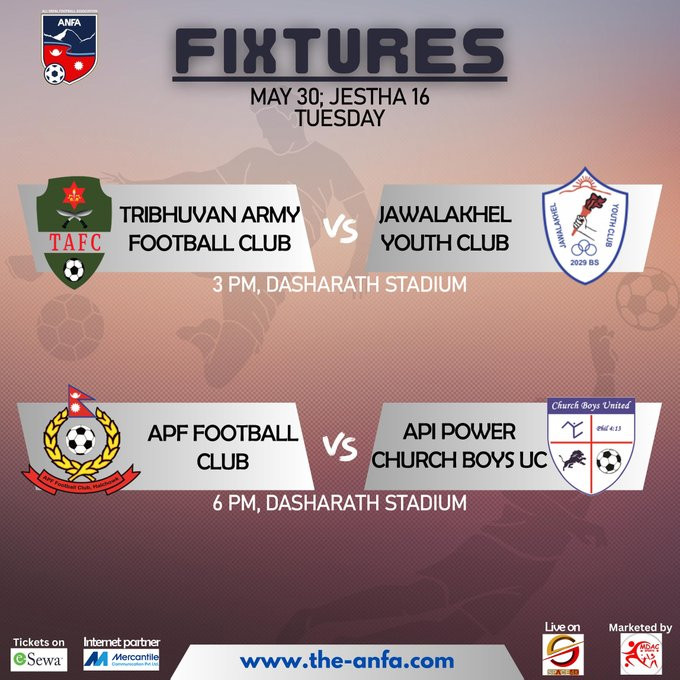 ए डिभिजन लिगः रंगशालामा दुईवटा तथा च्यासलमा एक खेल हुने